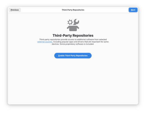 section, but that’s it)I don’t think nonfree is enabled by default. Though I guess the repos are still hosted by debian, unlike RPMFusion. Though Fedora does treat it as semi-official given that parts of it can be enabled during first setup.