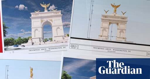 As part of Donald Trump’s legacy-building quest during his second term in office, the so-called “Arc de Trump” would stand 250ft tall, feature a 60ft golden Lady Liberty, and include a viewing deck. The phrase “One Nation Under God” would stretch across the top of the structure, according to the latest plans from Harrison Design.